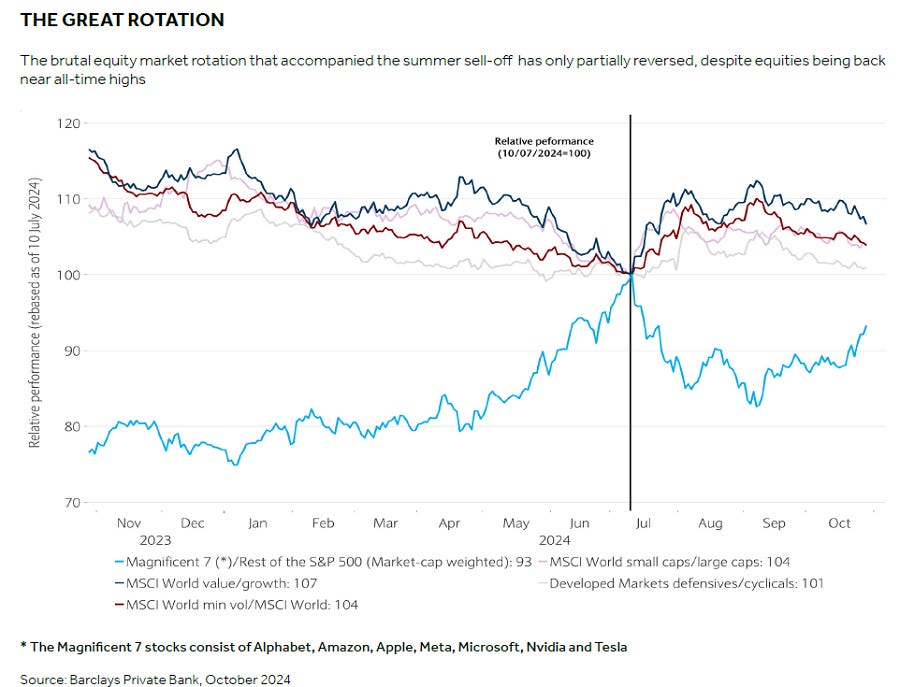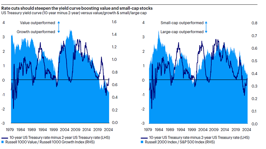 Economic Growth and Central Bank Policies: Global economic growth is projected to moderate, with the US expected to achieve a "soft landing," while Europe faces structural challenges, and China's recovery hinges on policy measures. Central banks are cutting interest rates, fostering a positive environment for equities and fixed income, though recession risks remain.